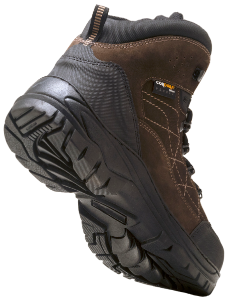 Compuesta por goma natural de alta resistencia, con diseño de dibujo profundo y tecnología de tracción avanzada. Optimizada para garantizar agarre y estabilidad en terrenos irregulares, superficies húmedas o secas. Costura en la puntera para más durabilidad.